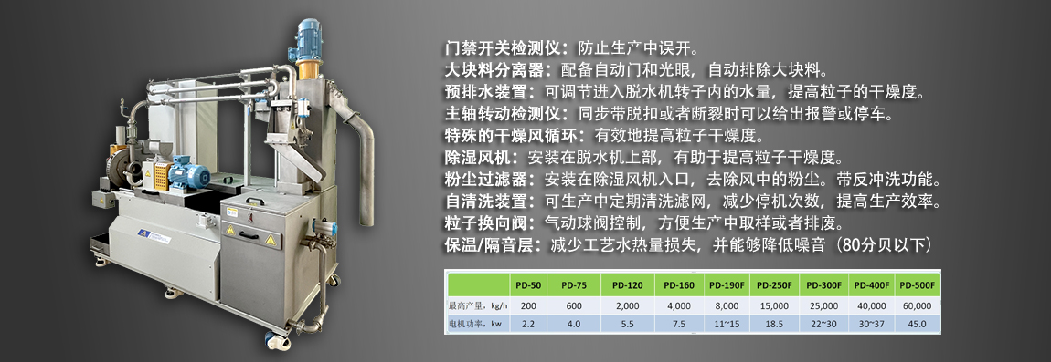 脫水機(jī)通常安裝在水箱邊上;也可以獨(dú)立安裝,比如安裝在料倉邊上,這樣粒子就可以直接進(jìn)入料倉,省掉了輸送環(huán)節(jié)。